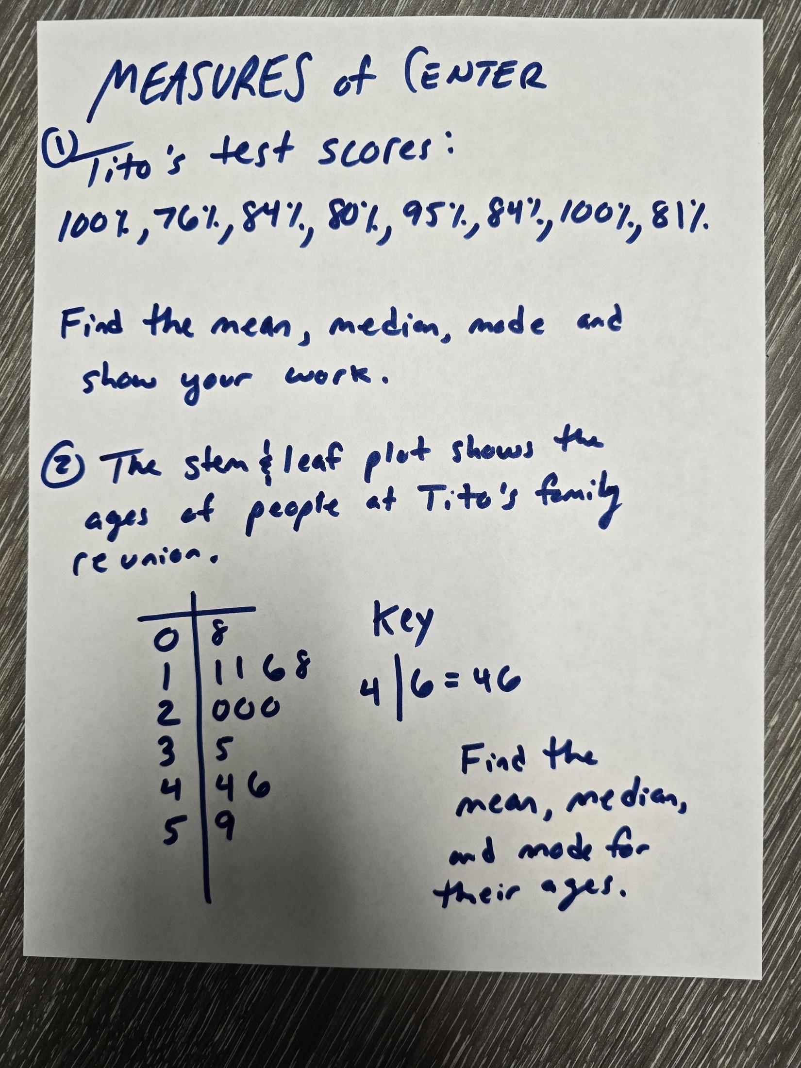 Mean - Median - Mode - Homework for 2/3. Show your work!